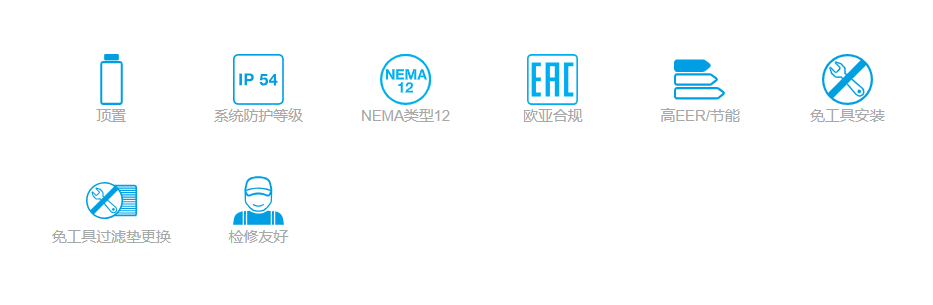 顶置式机柜空调提供独特的四重冷凝保护: 1.无电气柜罩冷桥。 2.电气柜无冷凝水过溢。 3.气流内未积累冷凝水。 4.无空气软管,否则有冷凝风险。