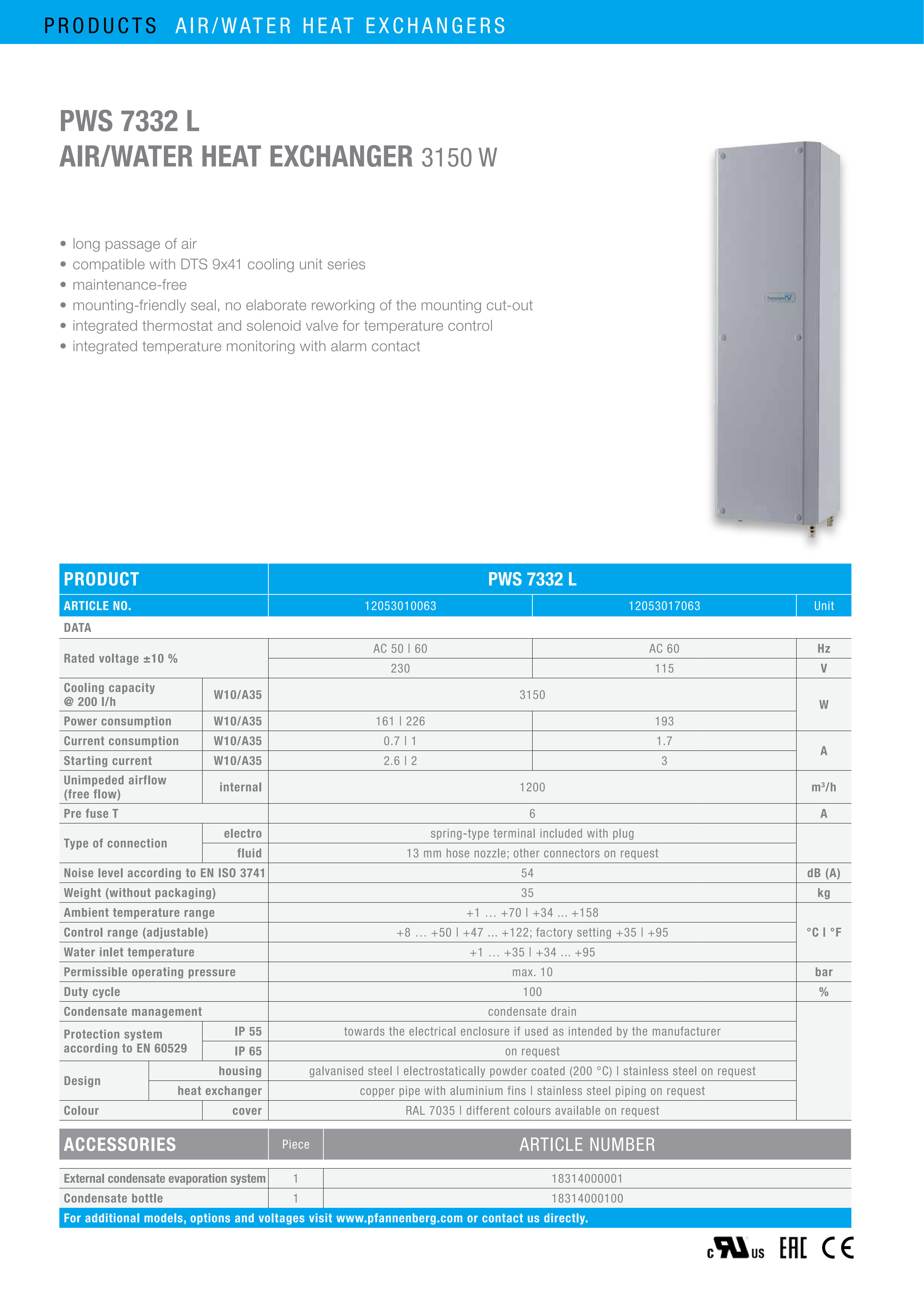 超薄型空气/水 热交换器-PWS 7332 L 3.2kW