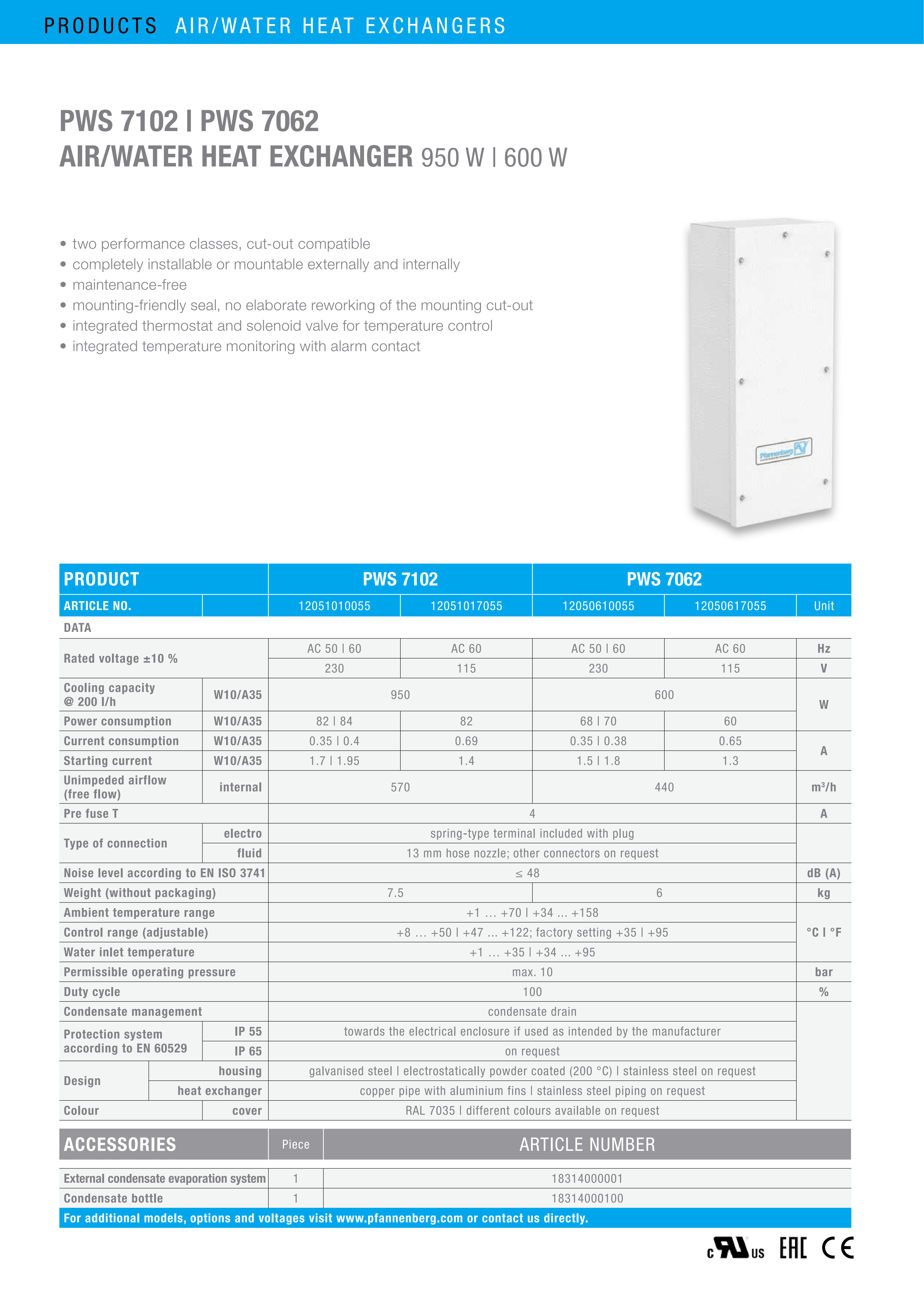 超薄型空气/水 热交换器-PWS 7102 1kW&PWS 7062 0.6kW